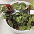 Limpiar los berros, lavarlos y escurrirlos bien. Repartirlos en 4 platos hondos individuales.