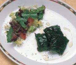 ensalada de hortalizas braseadas envueltas en hojas de acelga